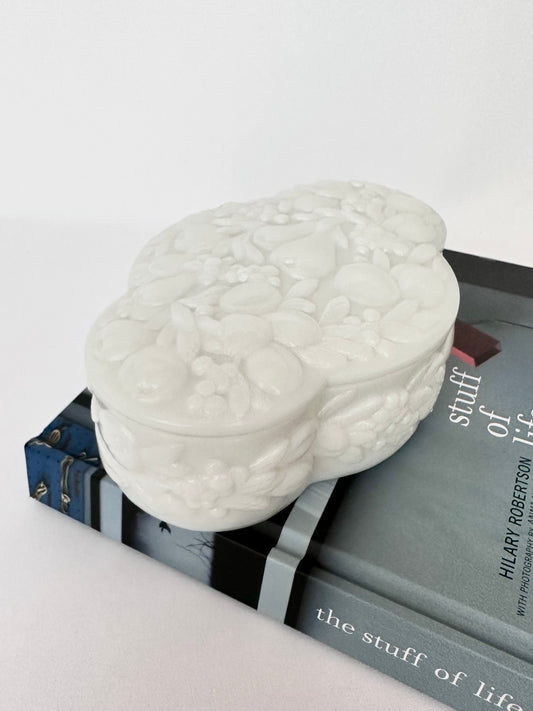 Sold outEliza Milk Glass Jewelry Box
