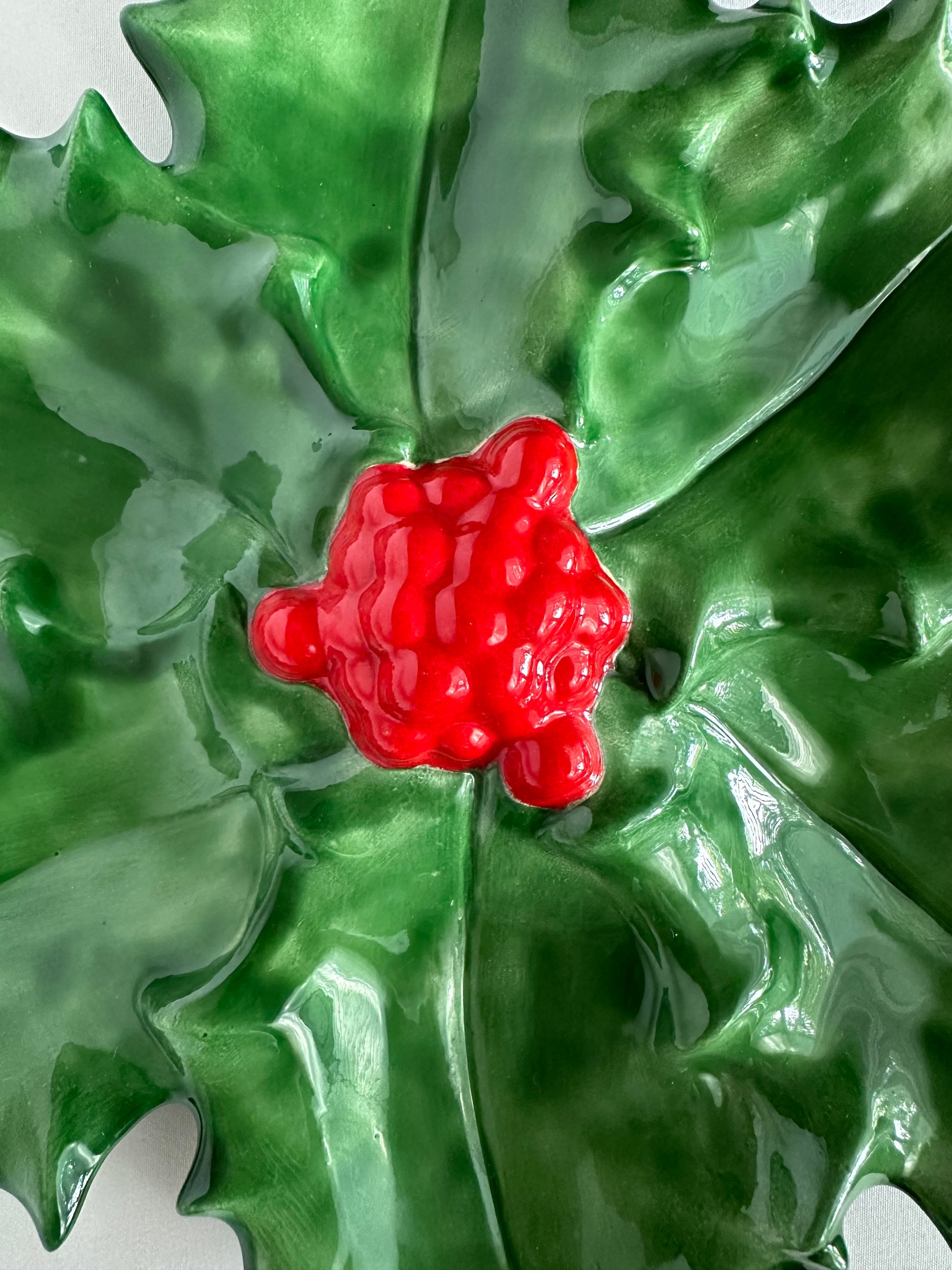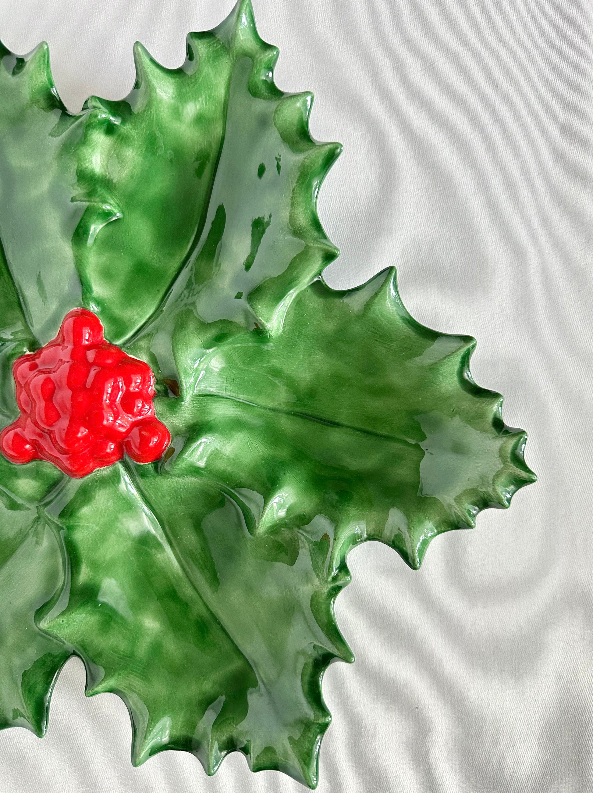 Shaped like a holly leaf and glazed in a rich green, this ceramic serving dish is perfect for candies, nuts, or seasonal treats. We can even see it working for a half dozen oysters! A bright and festive addition to your holiday buffet table!