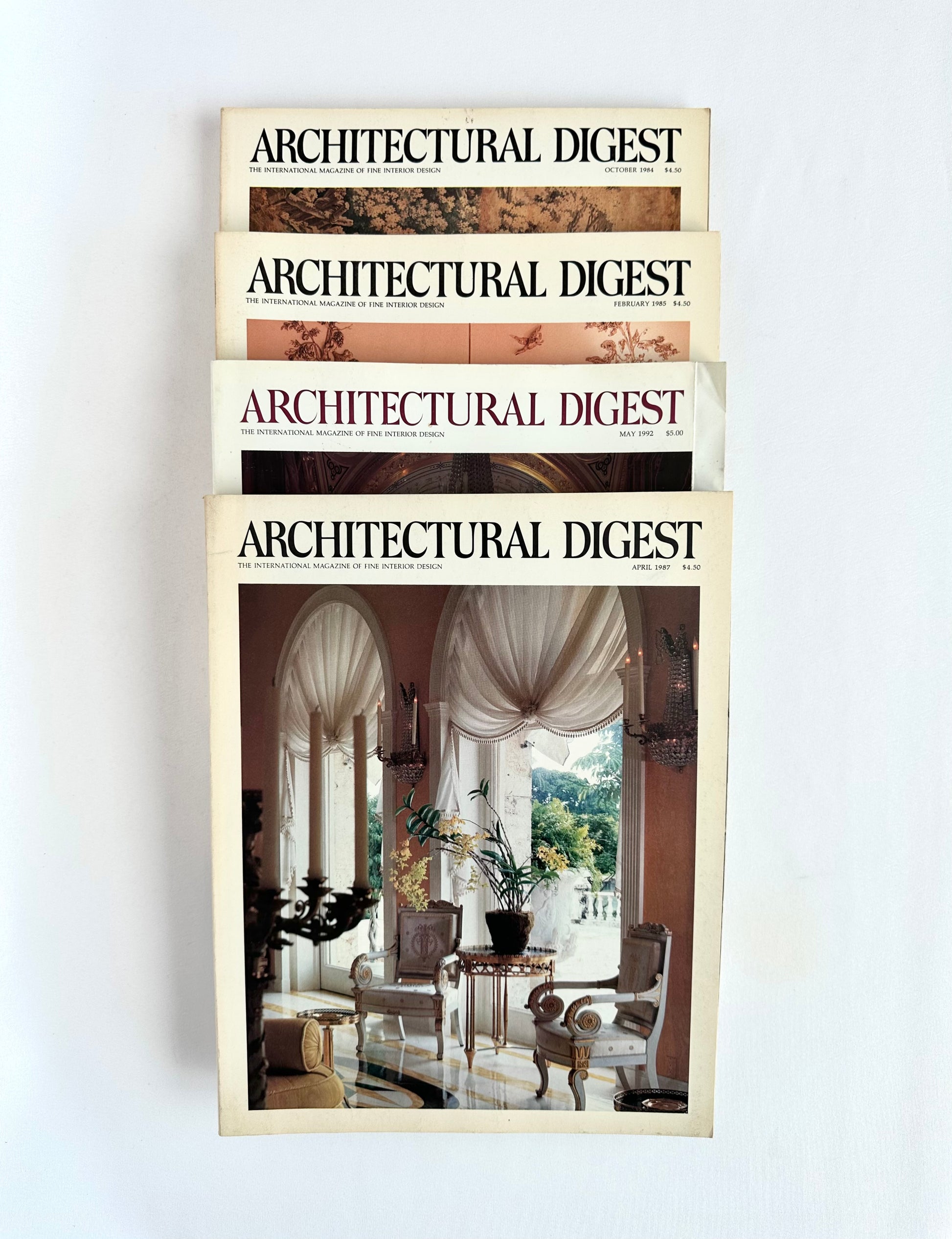 Who doesn't love flipping through a magazine with beautiful images? Architectural Digest is regarded as a long standing authority on architecture, interior design, landscape design and luxury living. We seek out the older cover graphics while sourcing and are happy to be able to offer this stack! These issues' covers were curated to reflect the grand European home aesthetic that you might find in a chateau in the French countryside. Opulent, historic, and, well, French!