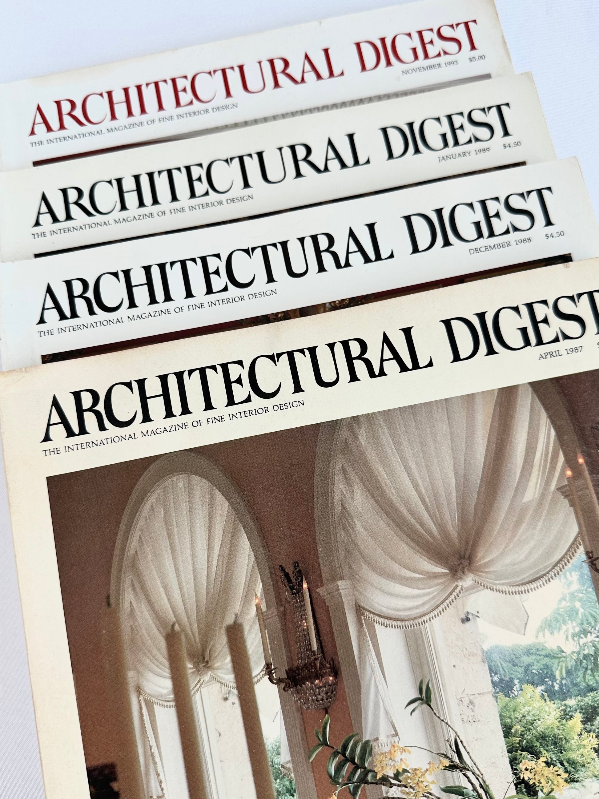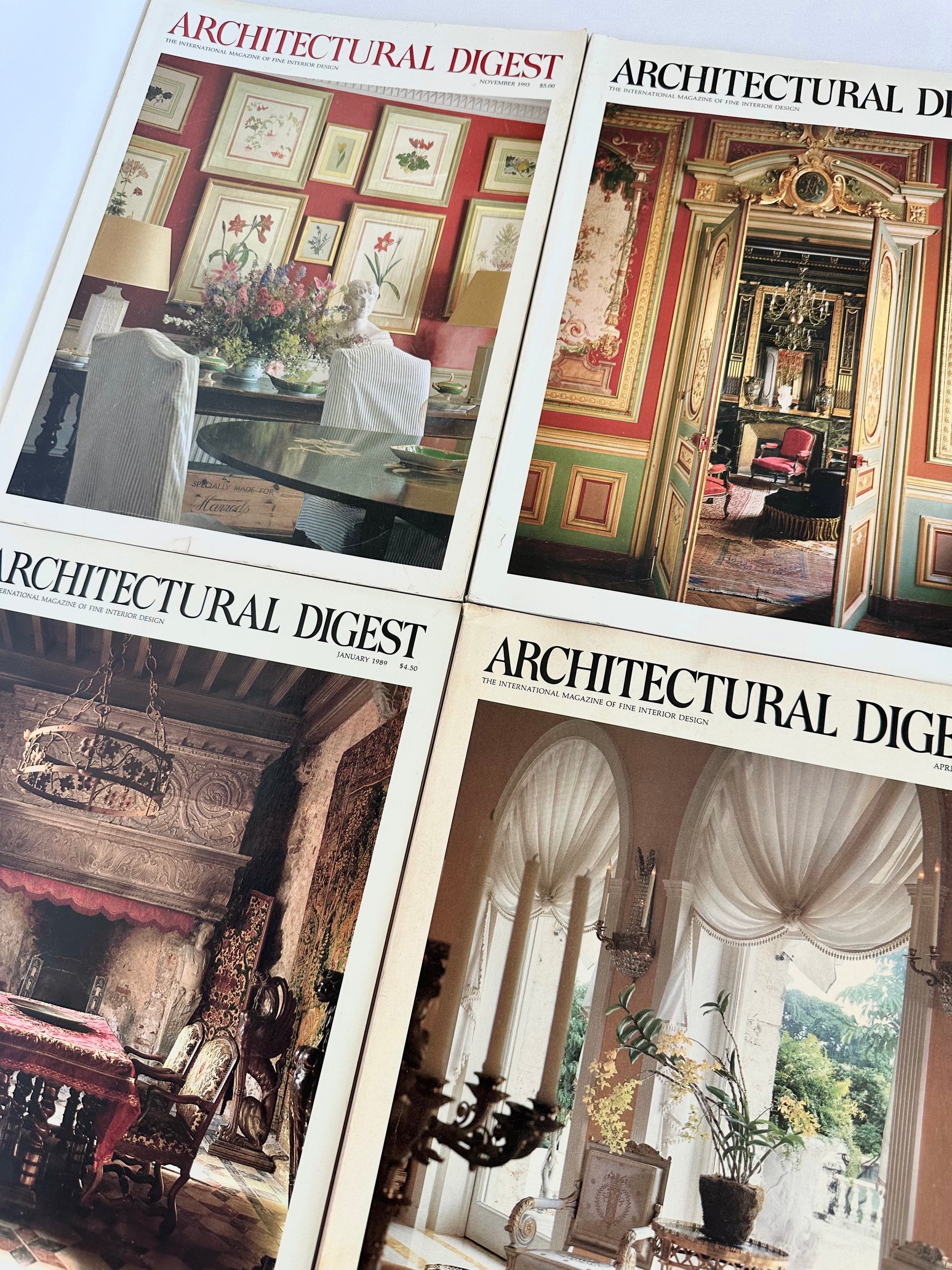 Who doesn't love flipping through a magazine with beautiful images? Architectural Digest is regarded as a long standing authority on architecture, interior design, landscape design and luxury living. We seek out the older cover graphics while sourcing and are happy to be able to offer this stack! These issues' covers were curated to reflect the grand European home aesthetic that you might find in a chateau in the French countryside. Opulent, historic, and, well, French!