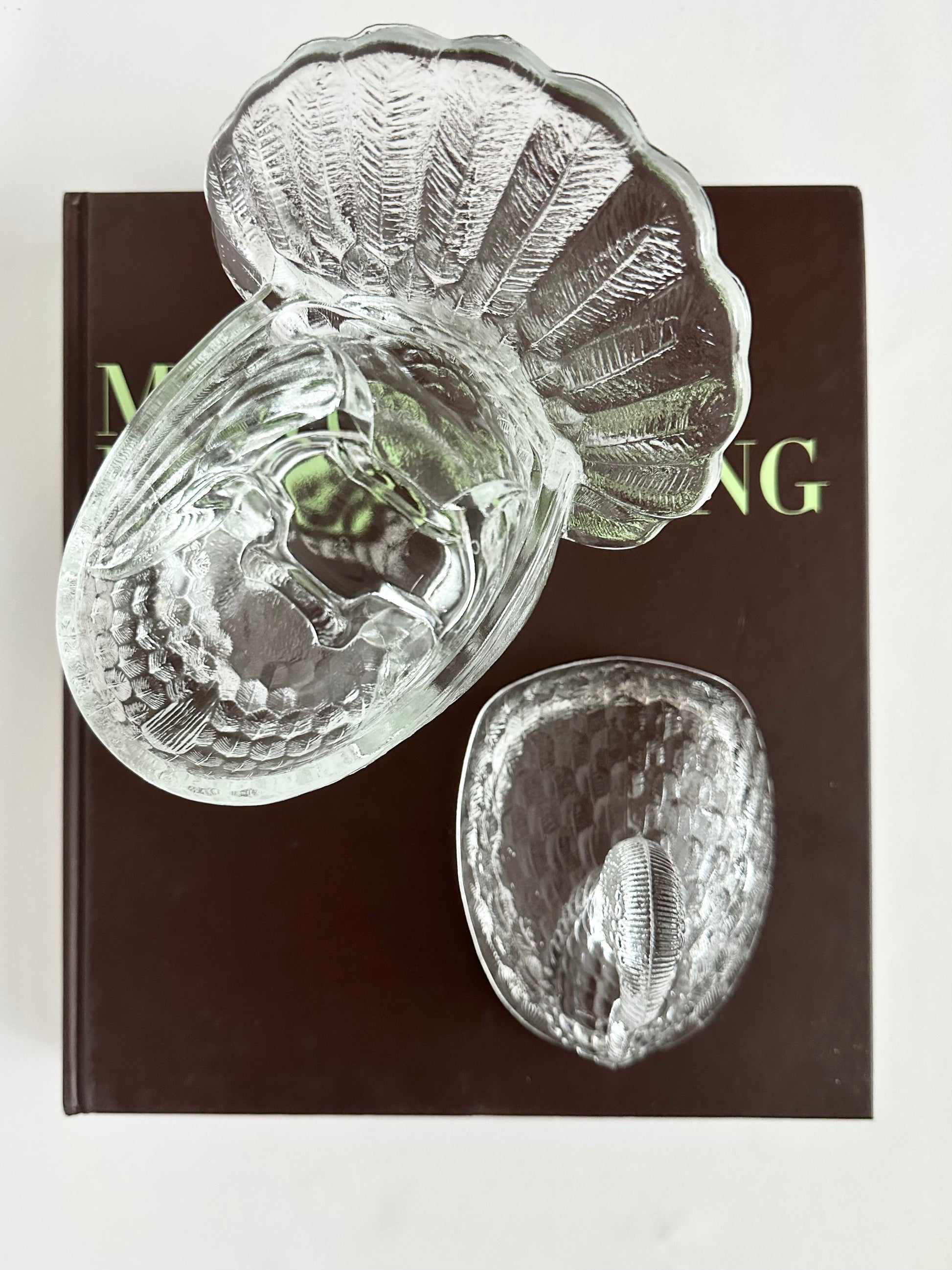 Our Willie turkey dish offers a variety of serving options from soup to nuts! Heavy pressed glass and lidded, this piece features a traditional looking bird with highly textured feather and facial details, but in the most neutral way! Blends into any decorative style and color scheme.